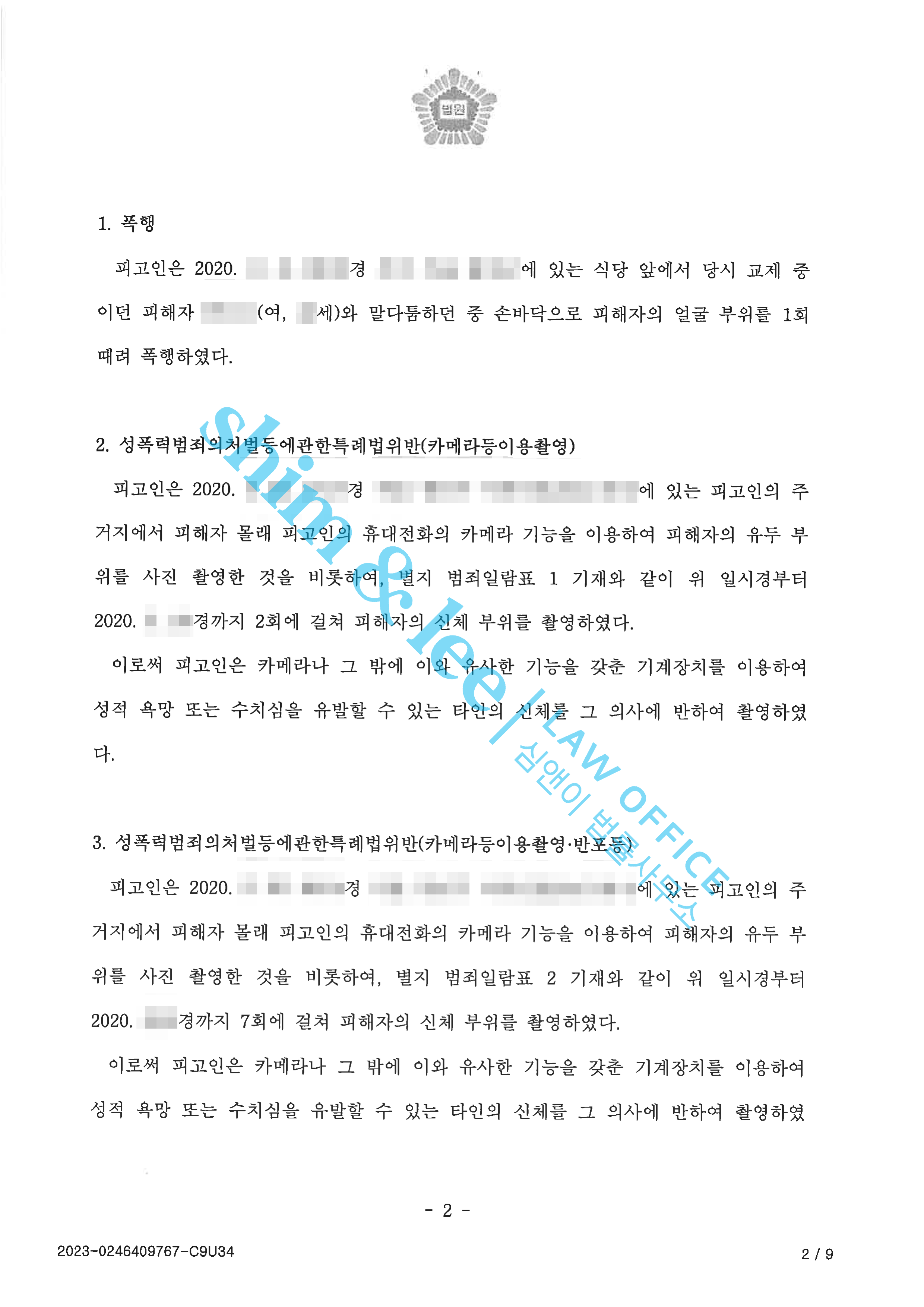 형사고소남자친구가 모텔에서 성관계 동영상 몰카, 2년 지나서 고소한 사건 2023.02.24징역 6월 / 집행유예 2년