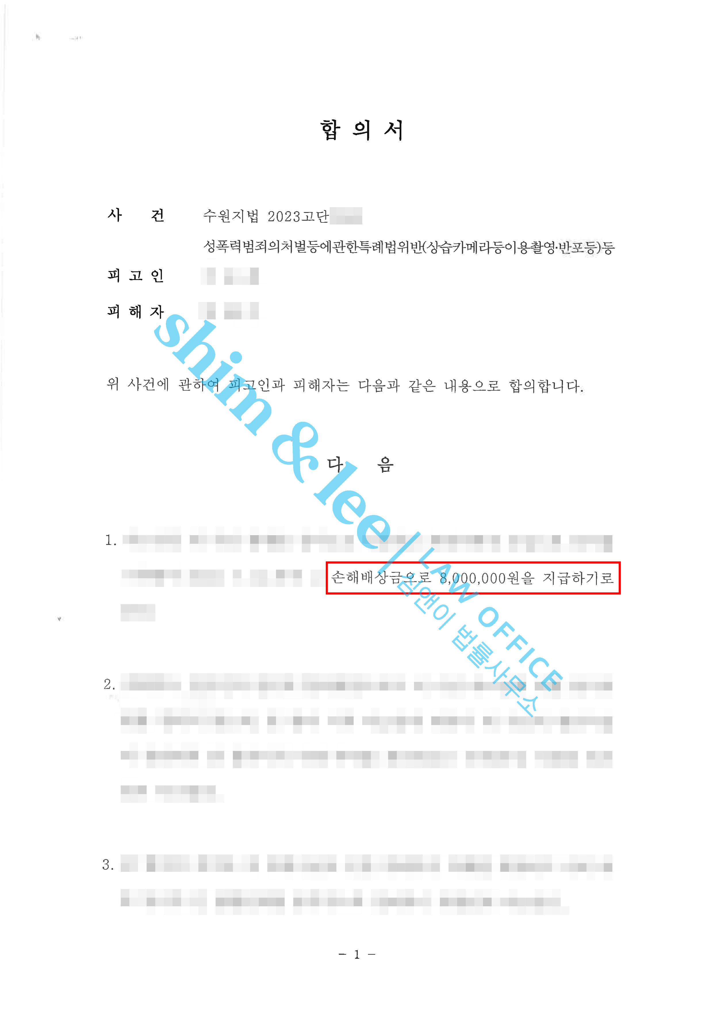 민사소송SNS 딥페이크 성범죄 피해, 위자료 손해배상 청구한 사건 2025.11.07손해배상금 1,000만 원 -