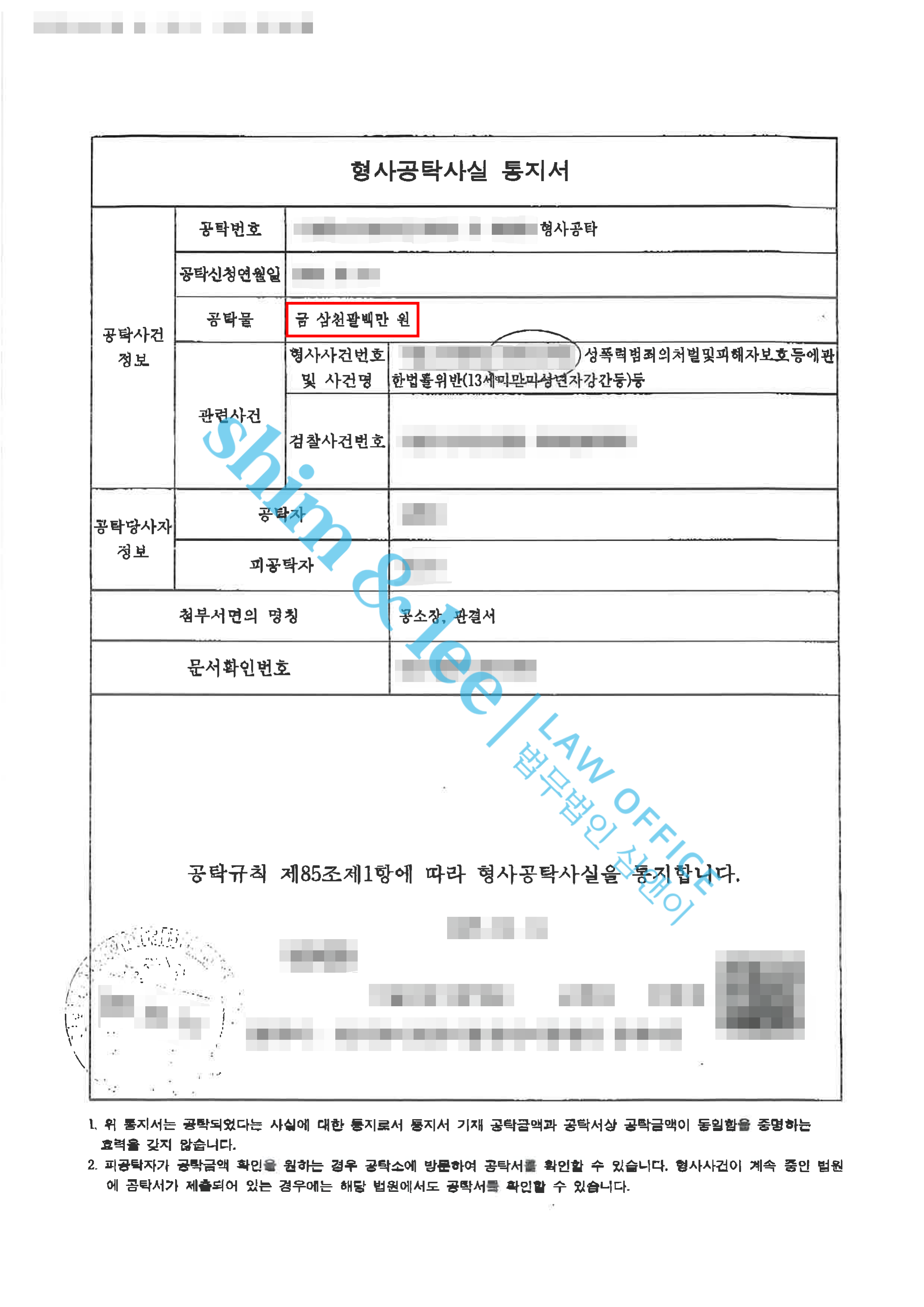 성폭력 치료강의 40시간 / 합의금 2,000만 원 -
