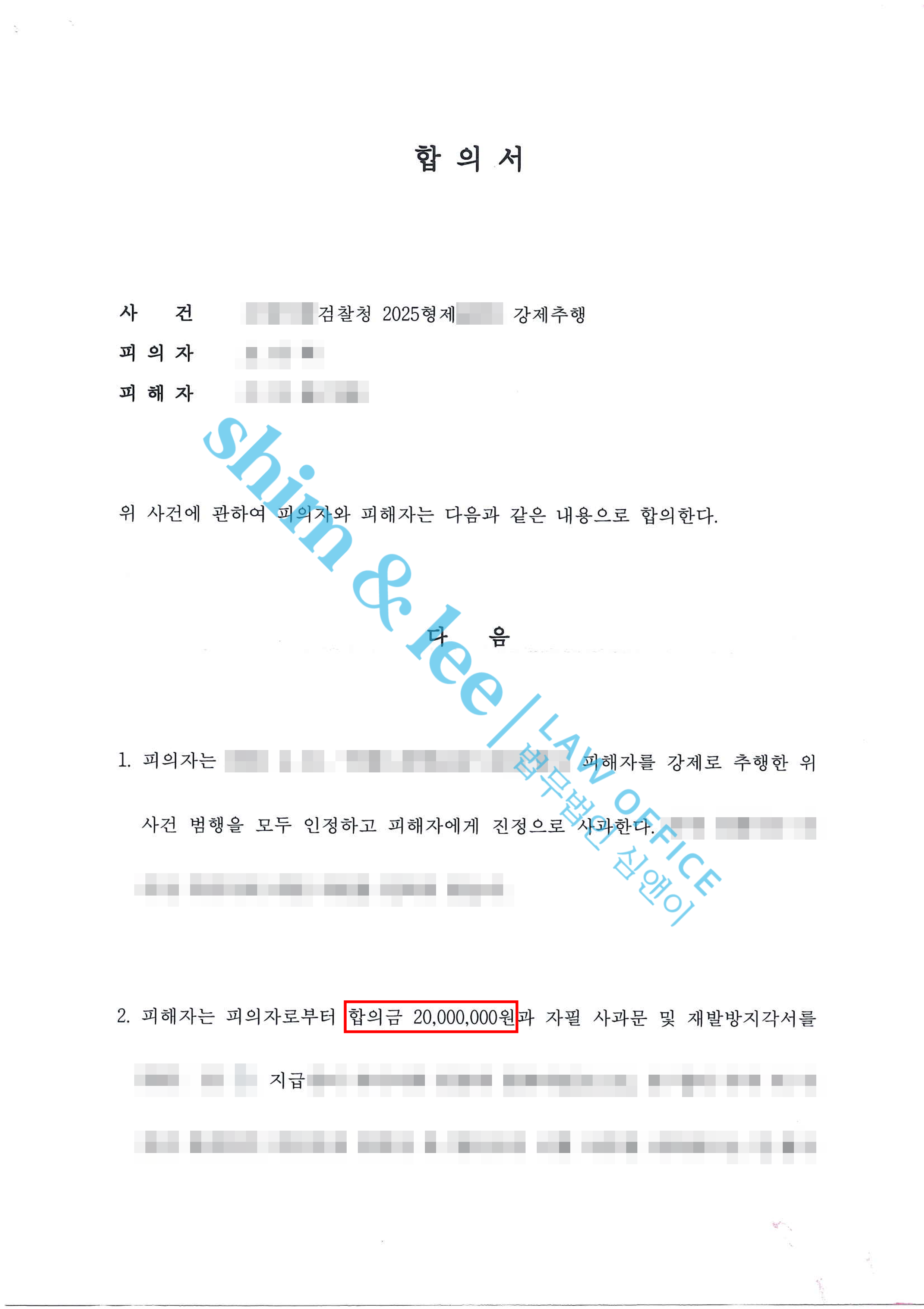 합의금 2,000만 원 -