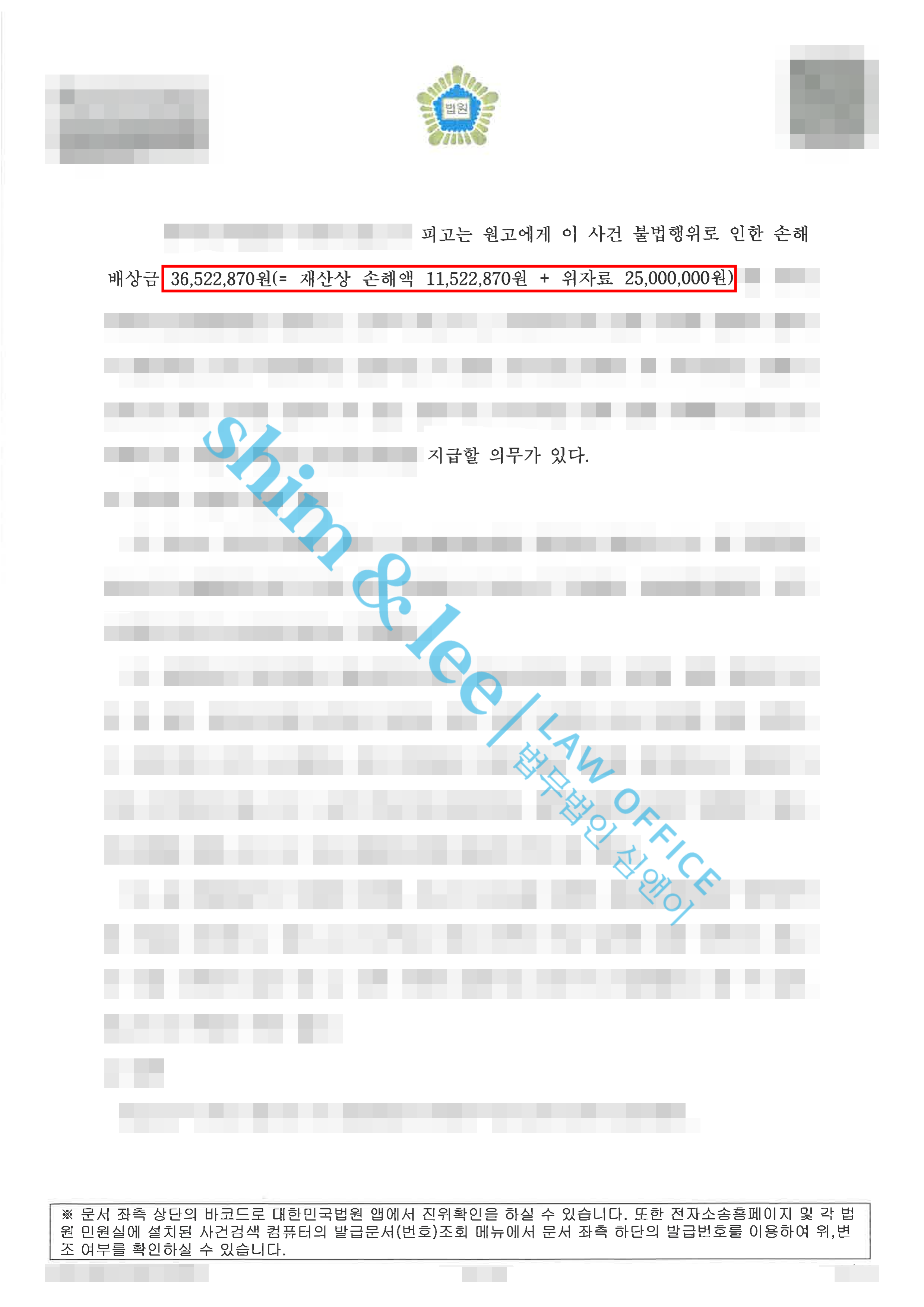 - 따라서 심앤이는 1심에서 인정된 3,652만 원보다 약 1,500만 원 증액된 금액을 인용 받는 뿌듯한 결과를 얻었습니다.