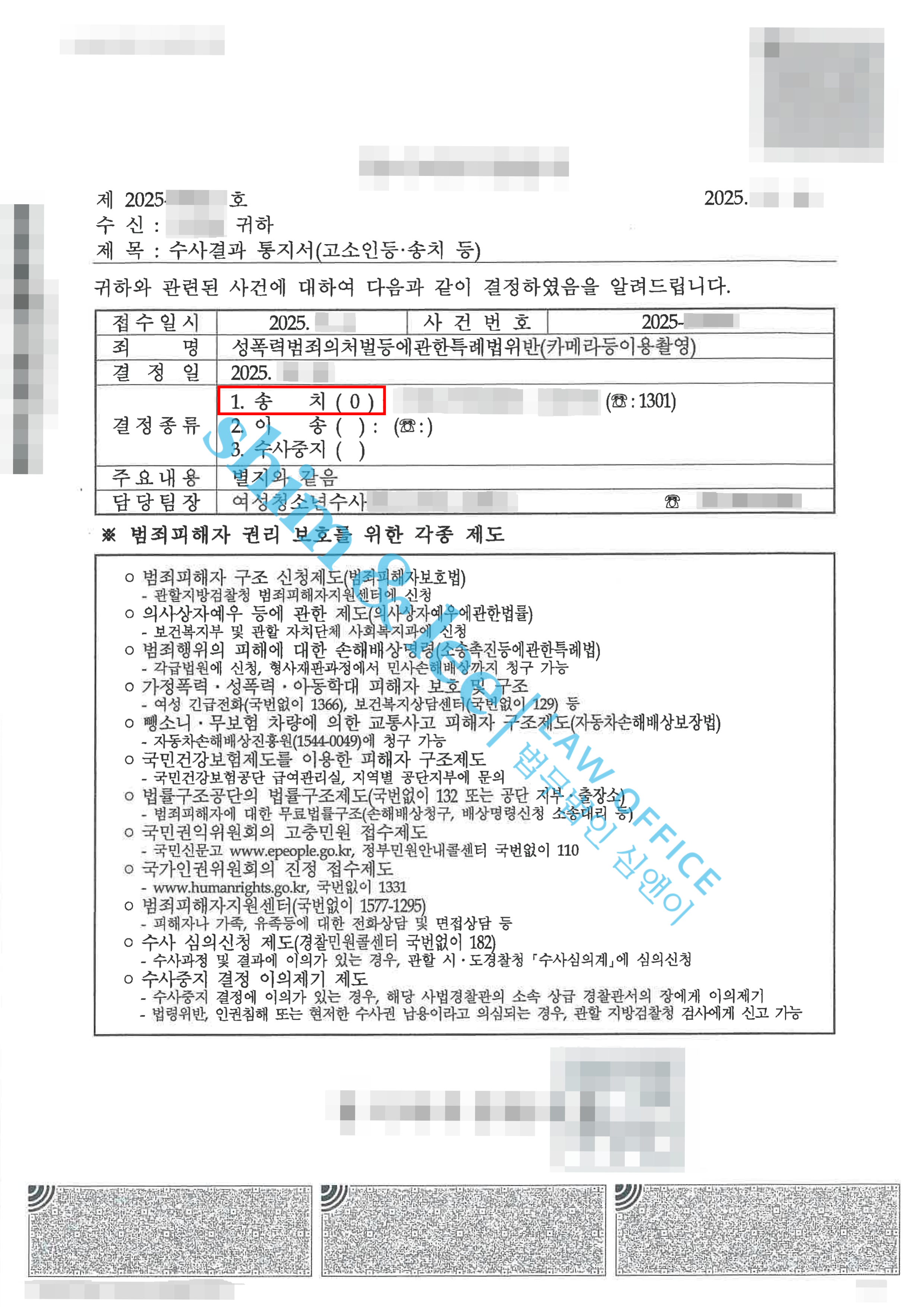 - 디지털 포렌식 결과 촬영물은 발견되지 않았지만, 피해자 진술의 신빙성과 이를 뒷받침 하는 정황증거를 면밀히 검토한 수사관은 가해자 카메라이용촬영 혐의가 인정된다고 판단하였고, 결국 가해자는 검찰에 송치되었습니다.