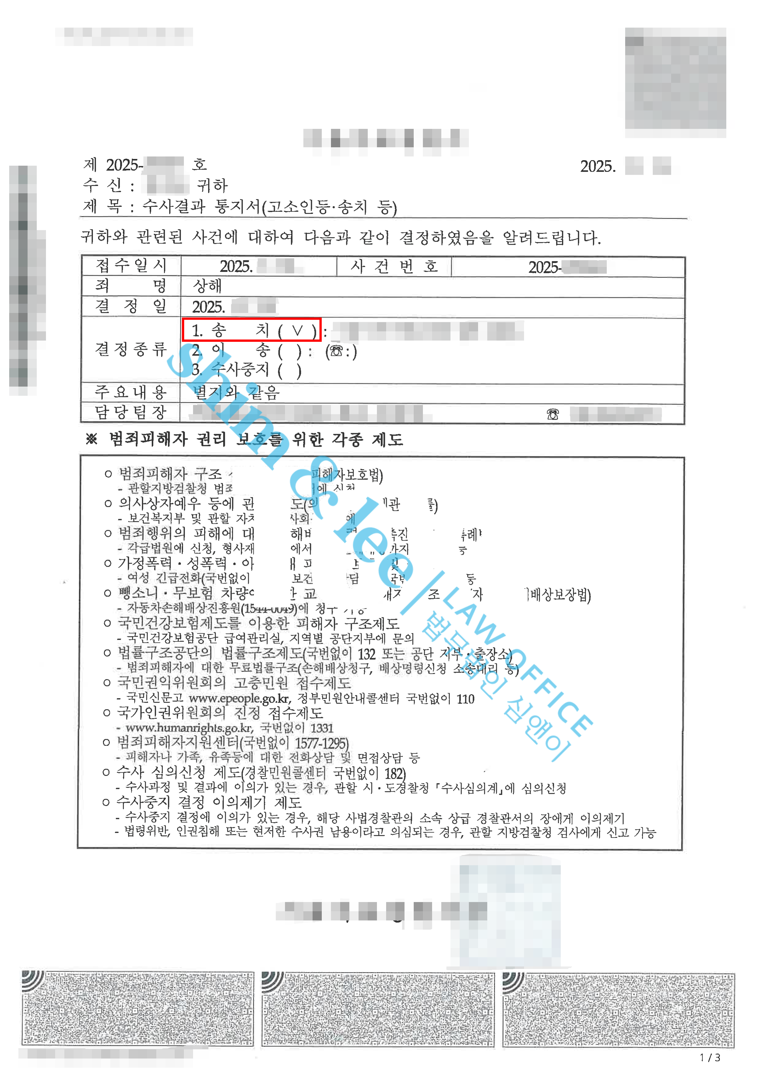 - 성병 상해 사건은 초기 대응이 무엇보다 중요한 분야이므로, 비슷한 피해를 겪으신 분들은 심앤이의 체계적이고 전문적인 조력을 받아보시기를 권합니다.