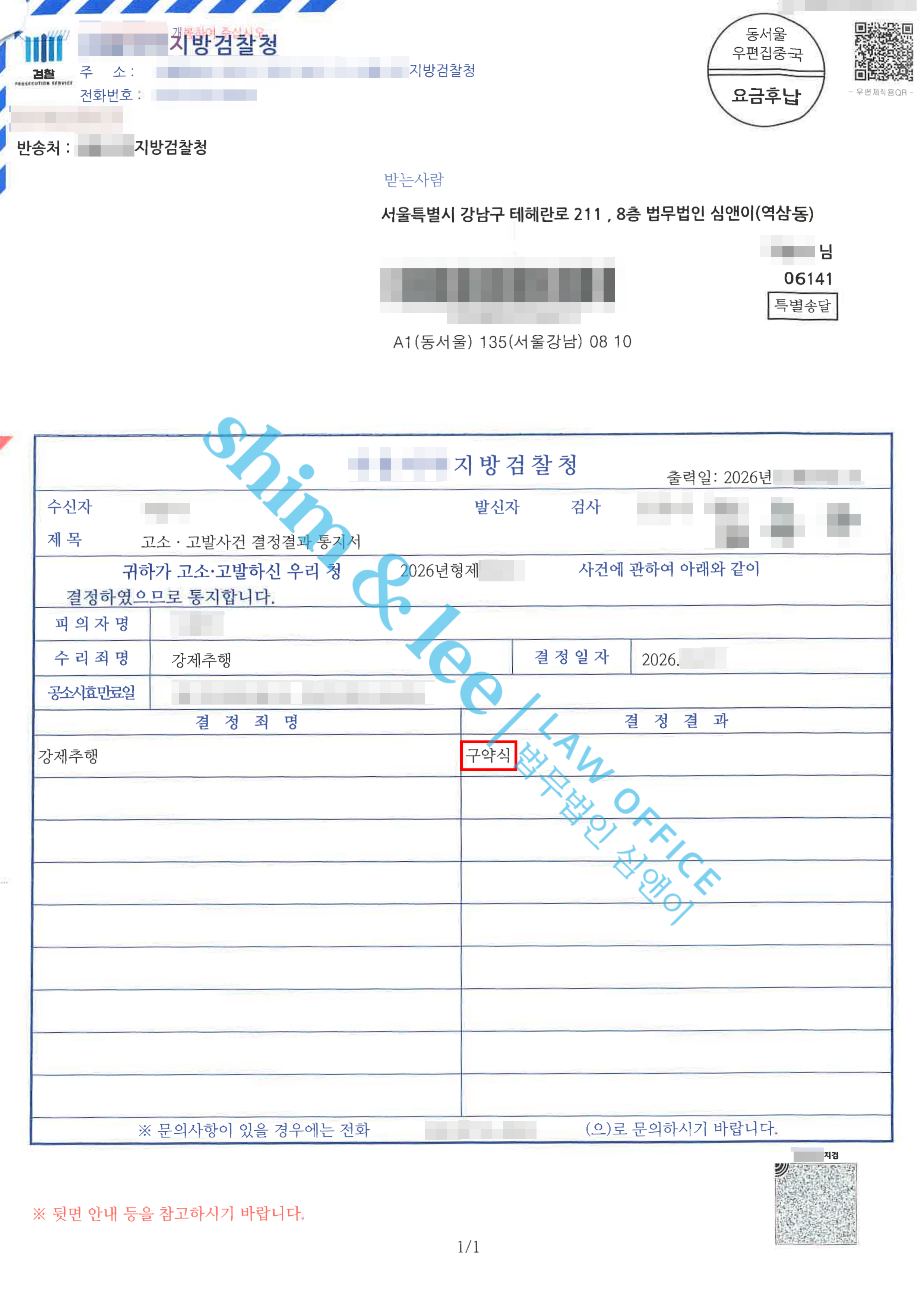 형사고소성적 파트너의 여자친구에게 나체사진으로 협박당한 사건 2025.12.26불구속 구공판 -