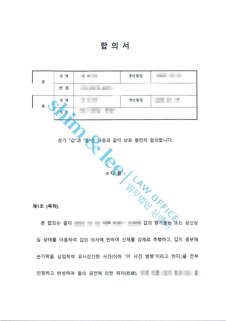 - 대표 변호사님은 합의서 작성시에도 비밀유지, 접근금지통〮신제한, 소제기금지 등 의뢰인을 보호할 수 있는 조항을 꼼꼼하게 확인했습니다.