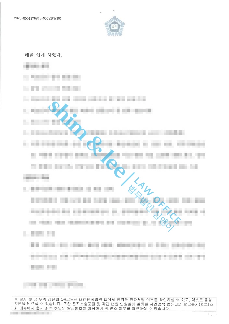 ※ 업로드된 내용 전문과 이미지 파일 등 일체의 콘텐츠는 법무법인 심앤이의 독자적인 표현물로써, 그 전체 또는 일부를 무단으로 복사 ·재배포하거나 자신의 이름으로 게시하는 일체의 행위를 금합니다.