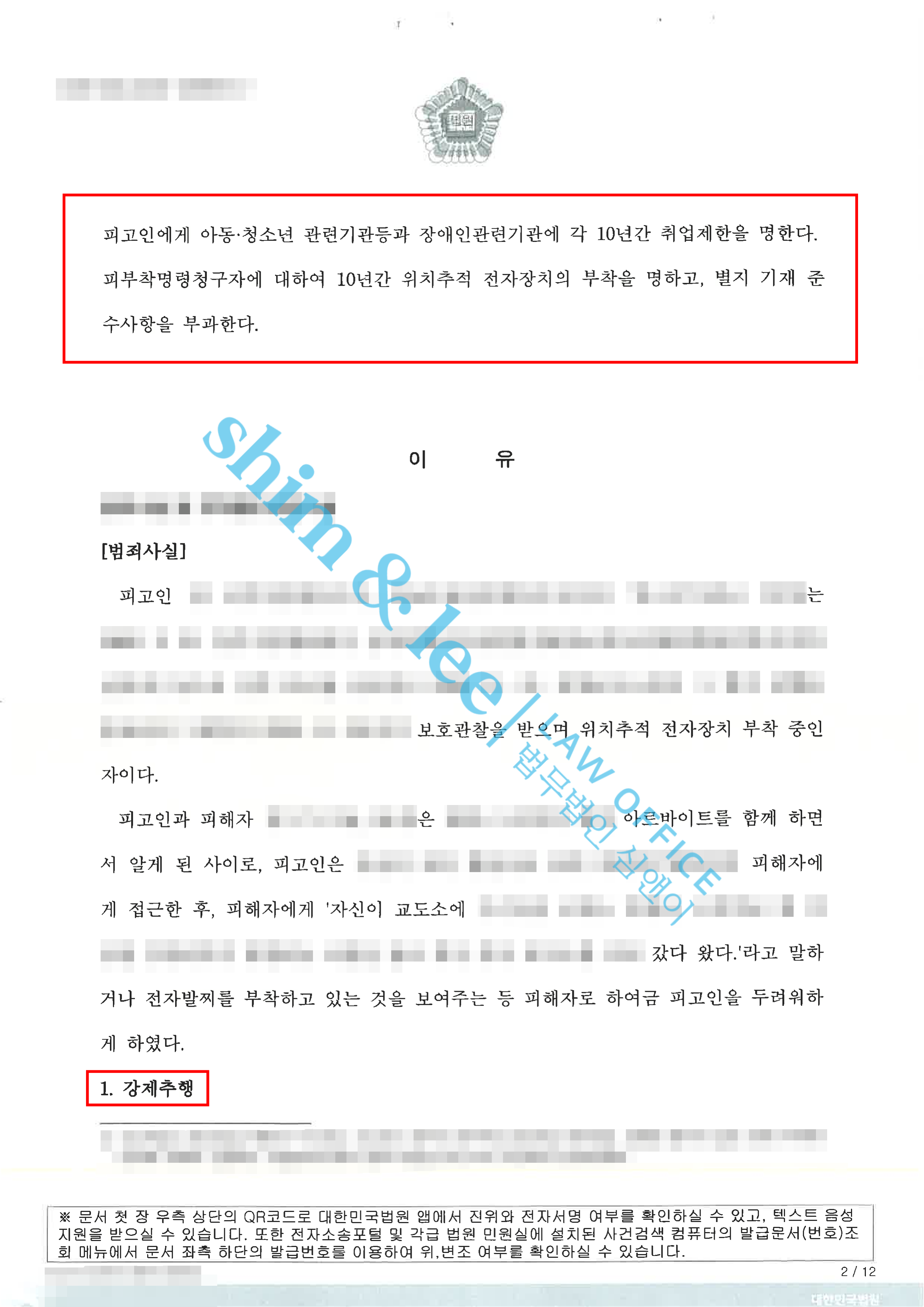 - 가해자는 자신보다 체격이 왜소하고 나이가 어린 남성들에게 먼저 친근하게 접근한 뒤 신뢰가 형성되면 신체 접촉을 시도하고, 피해자가 반항하거나 거부 의사를 보일 경우 돌변해 폭행과 협박으로 이어지는 유사한 수법을 반복해 왔습니다. 특히 가해자는 전자발찌를 범죄에 대한 반성의 의미로 삼기는커녕, 오히려 피해자를 위협하고 공포를 조성하는 수단으로 이용해 출소한 지 약 5년 만에 다시 유사한 범행을 저질렀다는 점에서 재범 위험성이 매우 높다는 점을 강조했습니다.