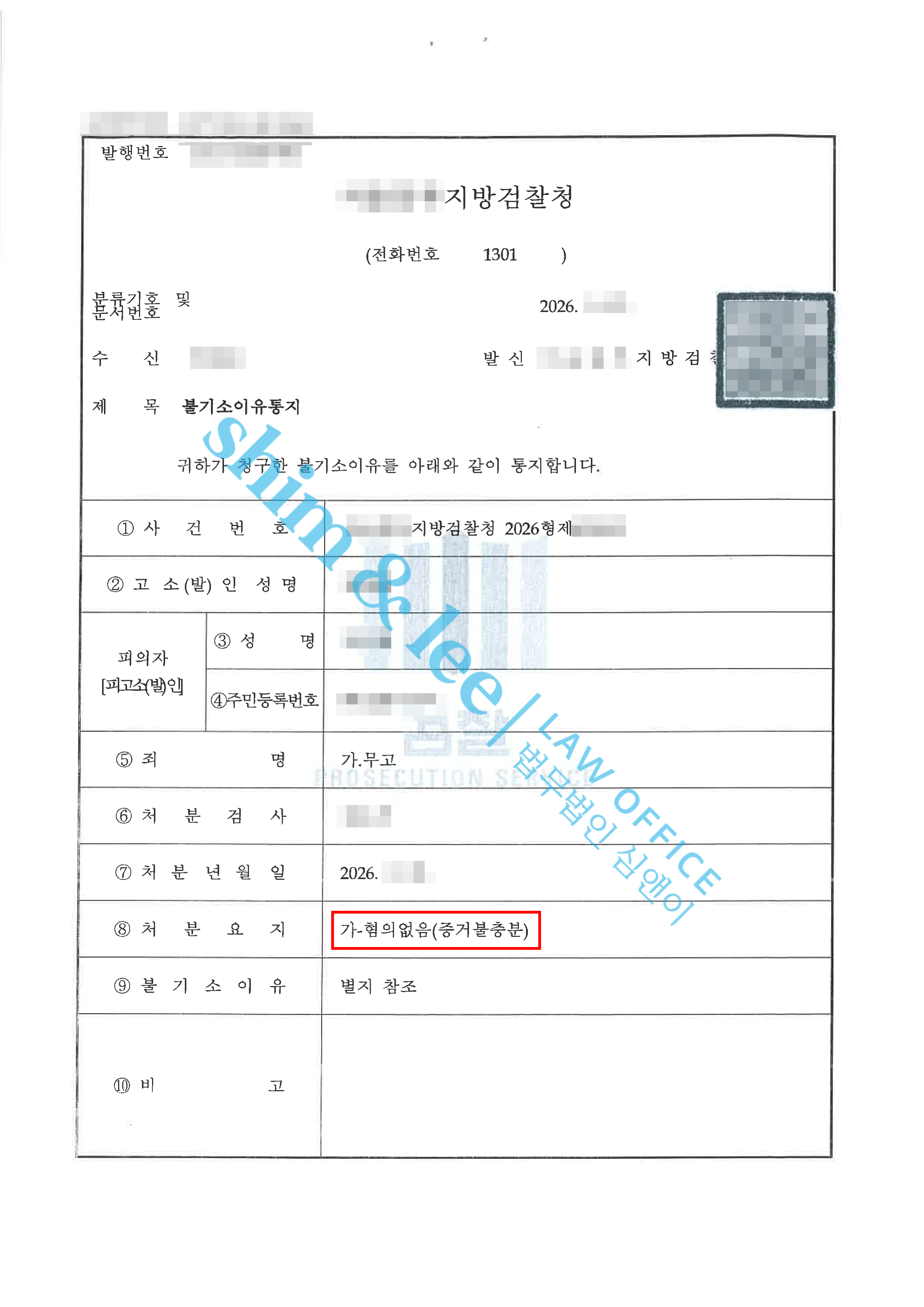 - 심앤이는 검찰 단계에서도 다시 한번 무고가 성립하지 않는다는 점을 체계적으로 정리한 의견서를 제출하였고, 그 결과 검찰 역시 신속하게 무고 혐의에 대해 불기소 처분을 내렸습니다.