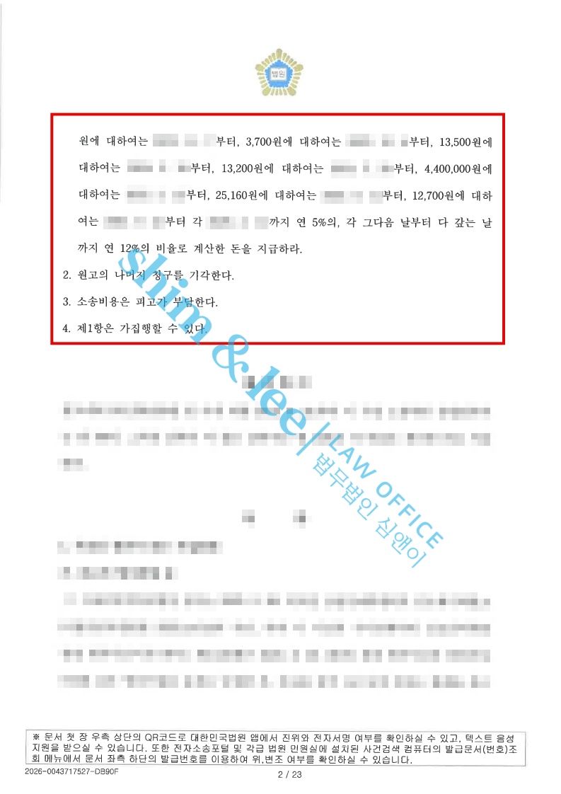 - 심앤이는 피고의 주장을 오목조목 반박해냈고, 그 결과 심앤이가 반박한 사항 그대로 판결문에 반영되면서 의뢰인님과 함께 큰 기쁨을 감출 수 없었습니다.