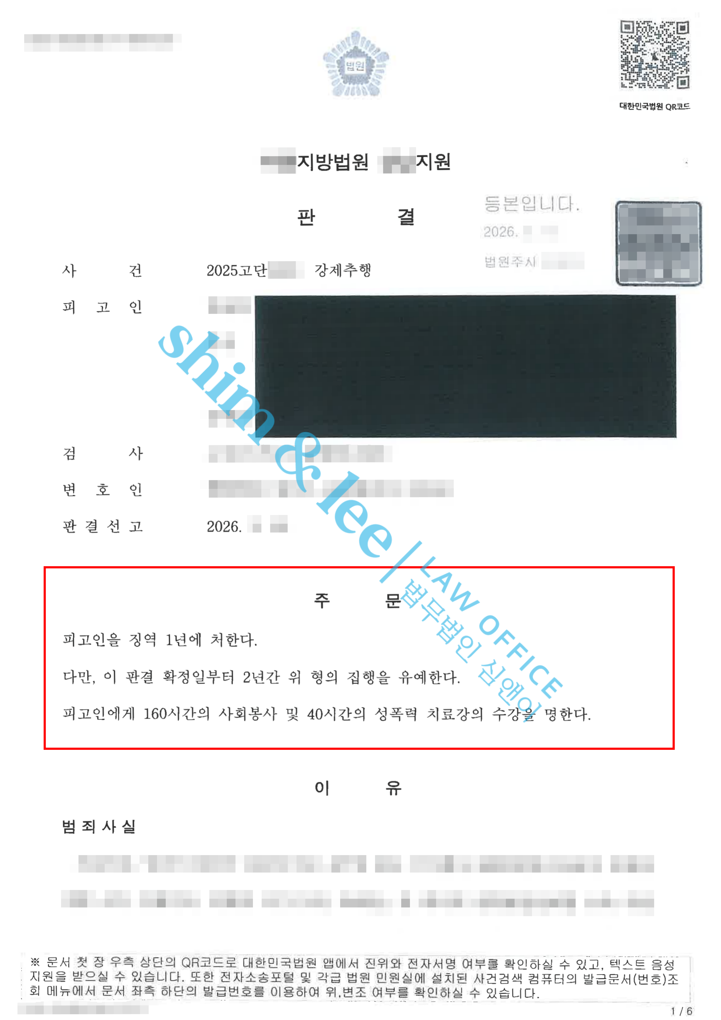- 결국 재판부는 가해자에게 징역 1년, 집행유예 2년을 선고했고, 사회봉사 160시간과 성폭력 치료강의 40시간 이수도 함께 명령했습니다.