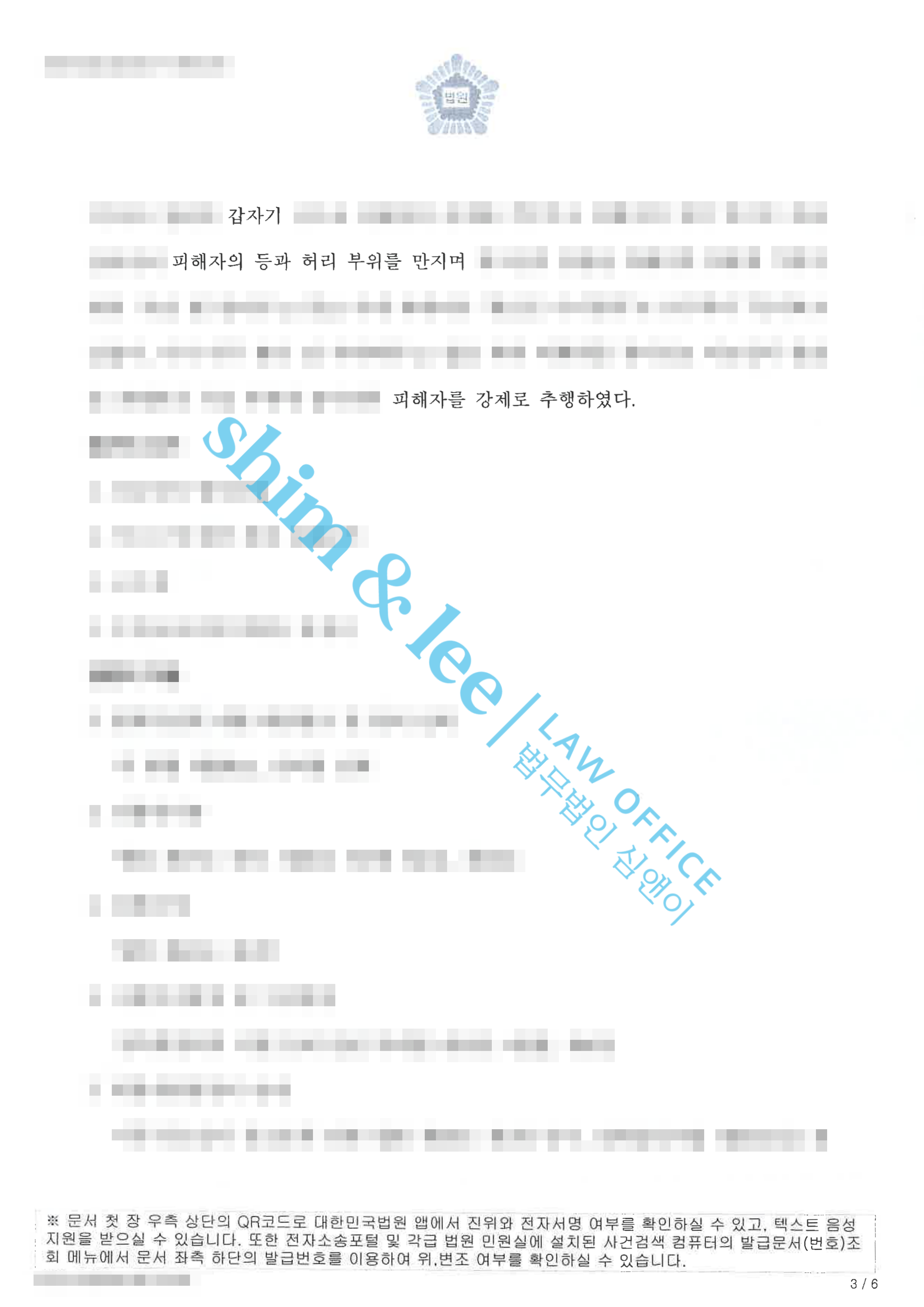 - 사건은 이미 재판 단계에 있었고, 한 차례 공판까지 진행된 상태였기 때문에 심앤이는 다음 공판을 앞두고 재판부에 의견서를 제출해 가해자의 범행이 결코 가볍지 않다는 점과 의뢰인이 이 사건으로 인해 겪고 있는 정신적 고통의 정도를 충분히 전달하고자 했습니다.