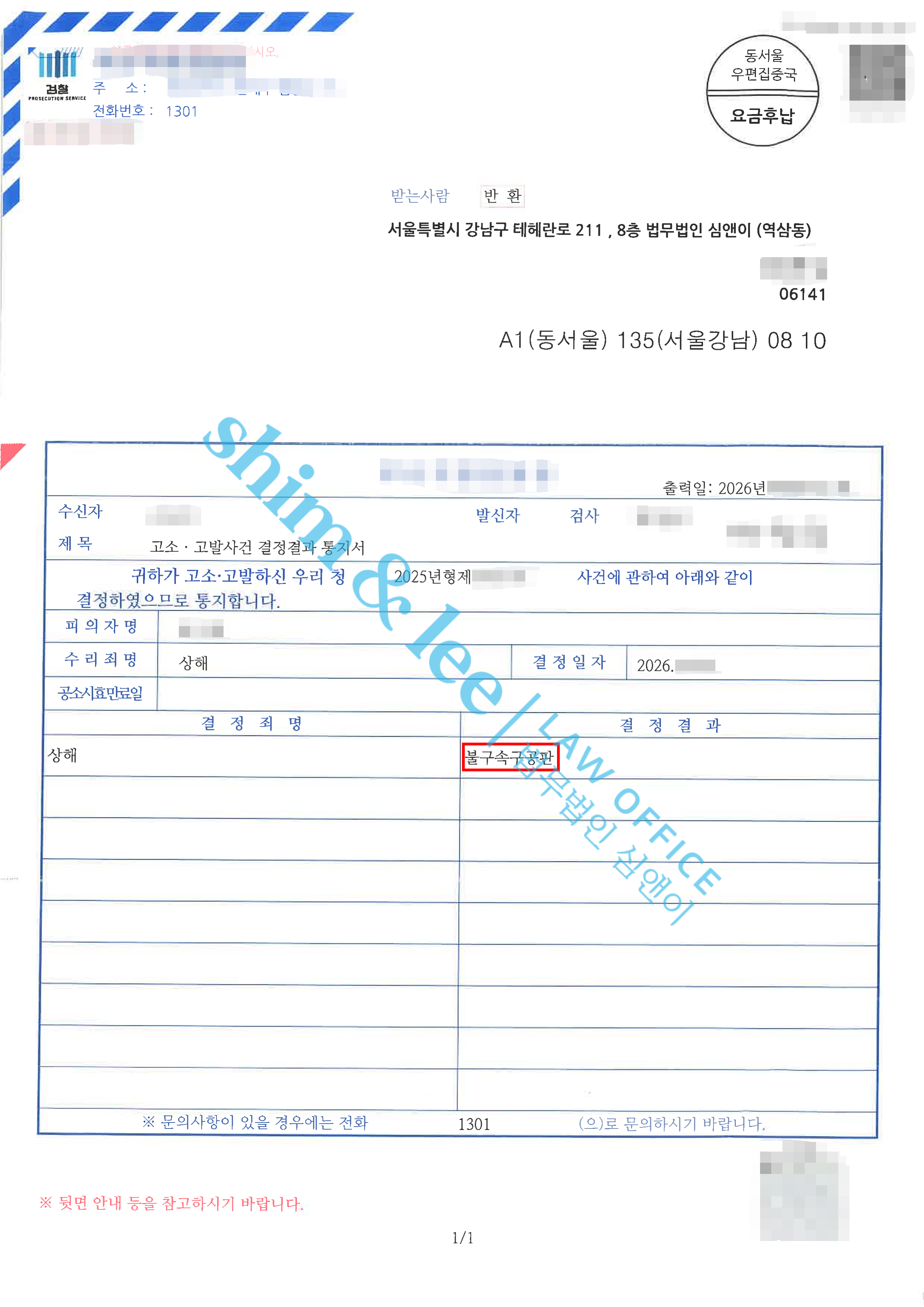 -의뢰인은 가해자에게 법적 책임을 묻기 위해 심앤이를 찾아주셨고, 사건은 송치되어 검찰 수사단계에 이르렀습니다.